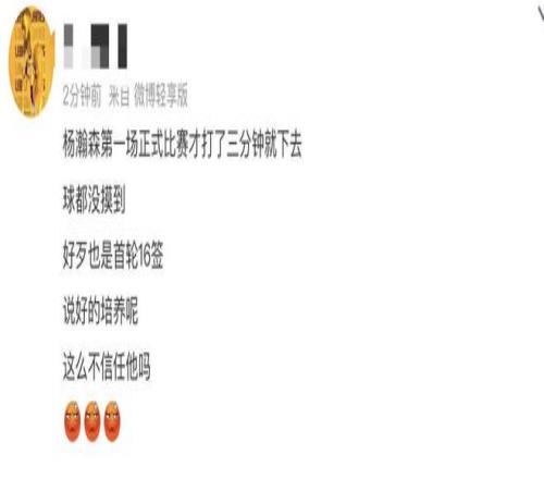 这自然让很多中国球迷都觉得相当的疑惑,之前主教练说好要重点培养杨瀚森,而且他也是球队的首轮16号签,为什么第一节比赛才刚刚热身,没有打出手感就直接把他换下来了?难道只是让杨瀚森上去亮一下眼而已吗?这样的操作确实让人非常的看不懂。