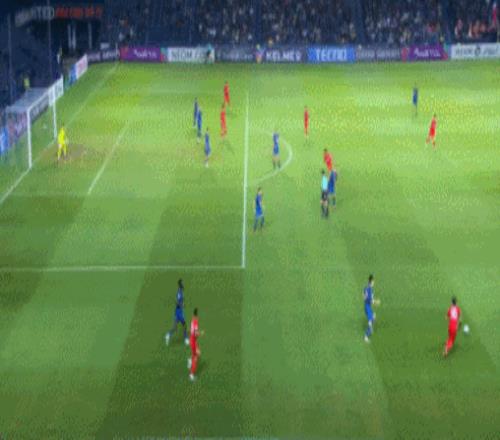 下半场,上海海港防线再度丢球,源自失误造成。第65分钟,武里南联角球开到后点,门将颜骏凌出击扑空,对方球员古德打空门得手,上海海港0-2落后。