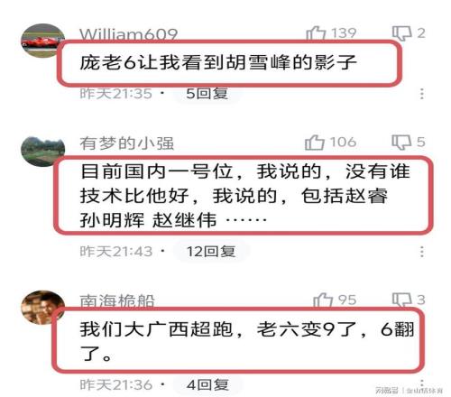 许多网友纷纷表示,庞峥麟应该进国家队。“立贴为据,老六早晚会进国家队”;“进国家队应该妥妥了吧”;“我知道你们不抱太大希望,但是我知道广西球迷会一直认为老6有国家队的实力。两年前说的话。”;“事实证明国家选材有很大问题,基本功好才是王道,选才应从各方面来考虑,而不是以身高或者出身来选。基本功必须排第一,基本功若是不好,要么传不好,要么别人传给你接不住。”;“我们广西狼兵,只要出去的,就没有一个差劲的,以前有朱八,现在有老六,还有廖三。”;“这才是乐透选秀的价值。”……