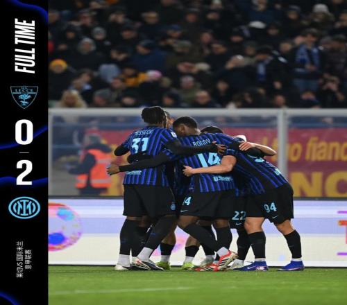 北京时间2月22日凌晨,意甲第26轮继续展开较量。领头羊国际米兰客场挑战莱切。最终,蓝黑军团凭借下半场替补登场的姆希塔良的进球和阿坎吉的头球破门,在客场成功拿下小辣椒。